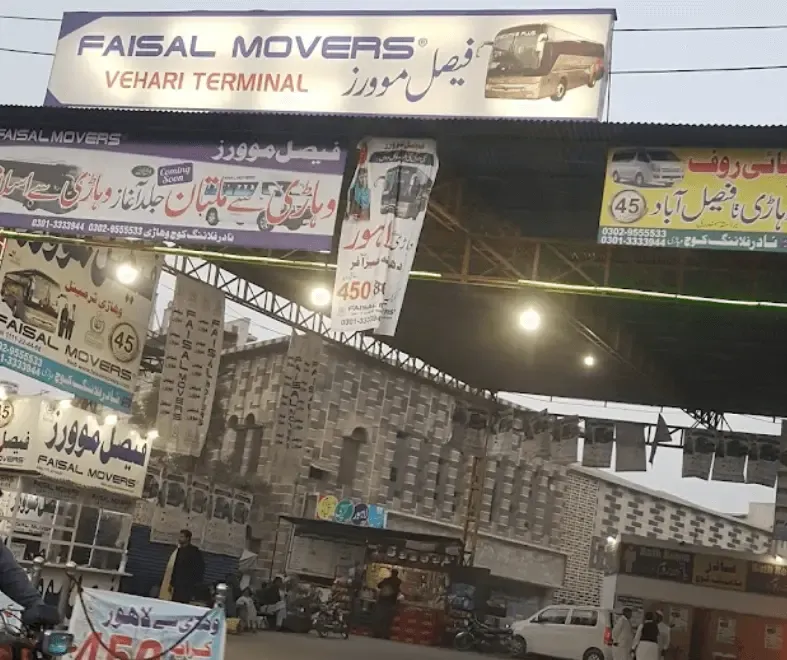 Located at the General Bus Stand on Hasilpur Road, Vehari, Faisal Movers offers a well-equipped terminal serving passengers traveling across Pakistan. The terminal features convenient amenities, including waiting lounges, ticket counters, and a masjid, ensuring a pleasant travel experience.